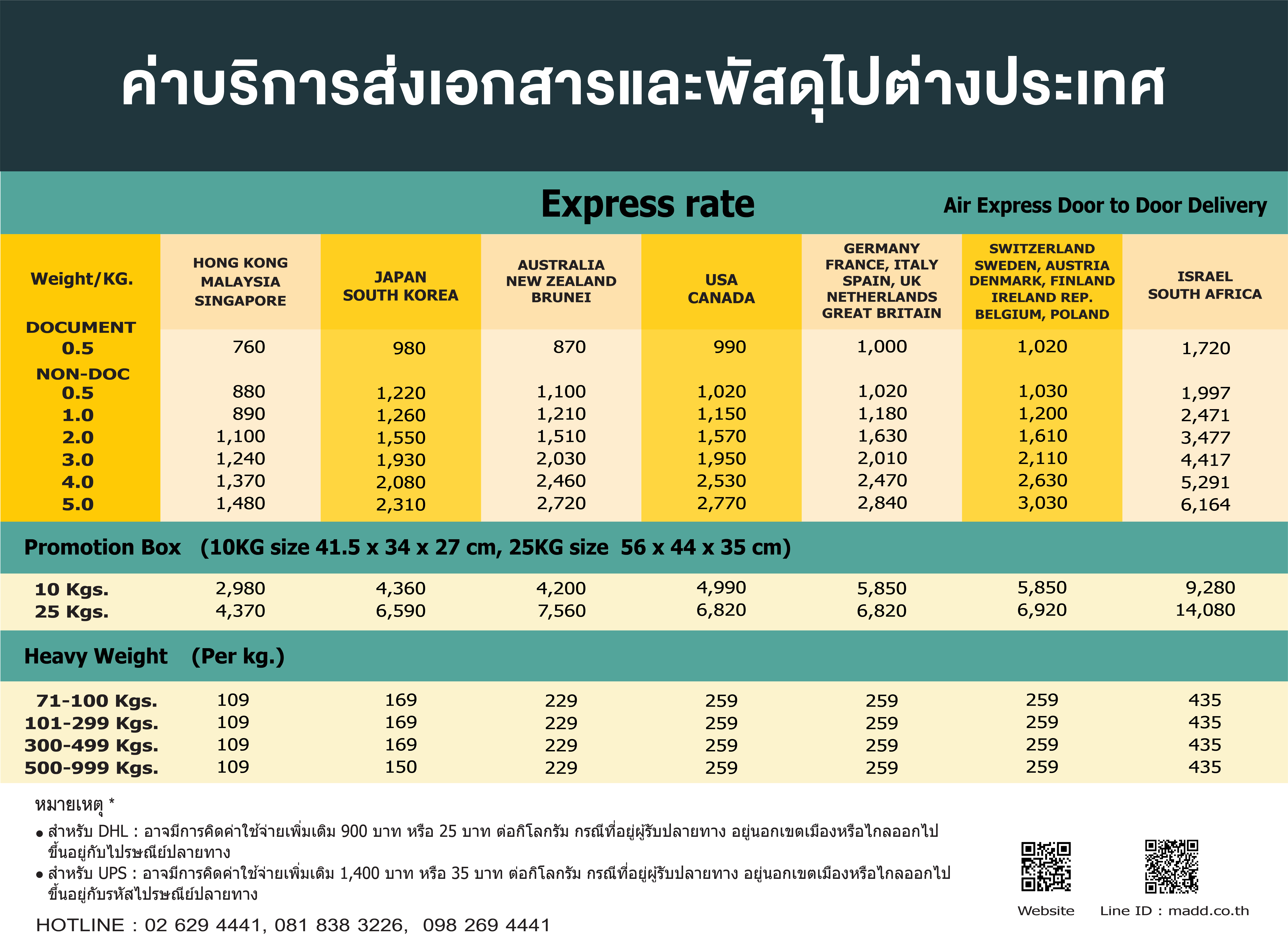 ต้องการดูเรทราคา ประเทศอื่นๆ หรือน้ำหนักนอกเหนือจากนี้ กรุณาคลิกลิ้งค์ที่ ’โปรโมชั่นพิเศษ วันนี้’ เข้าในเวปหลักของเรา ได้เลย